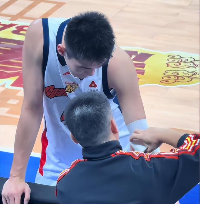 第四节比赛中段,王洪泽也在一次篮下争抢篮板过程中出现受伤情况,险些被鲁吐布拉反关节卸掉胳膊。