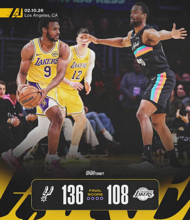 湖人108-136马刺!布朗尼创纪录,雷迪克谈文班亚马也直言不讳