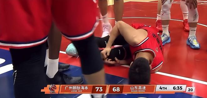 翻滚倒地很痛苦!郭艾伦左膝盖受伤,已被担架车抬走!广州队难了