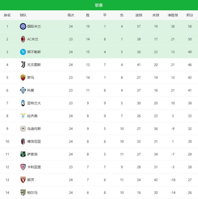 随着国米5-0+尤文2-2!意甲最新积分榜:米兰距榜首8分 3-5名差7分